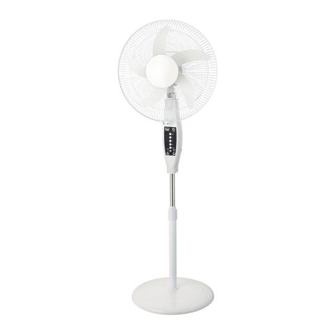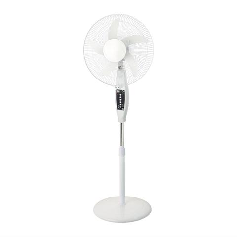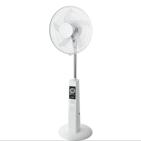Ventilador de pie de 5 aspas de 16 pulgadas, luz LED, Banco de energía de carga USB, nueva patente, 12V CC, Motor sin escobillas, Control Digital, batería de plástico